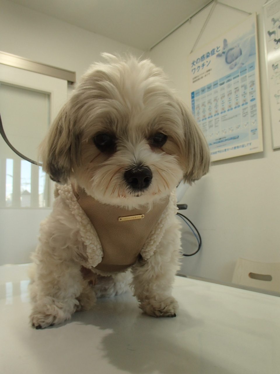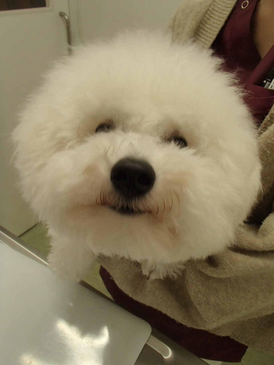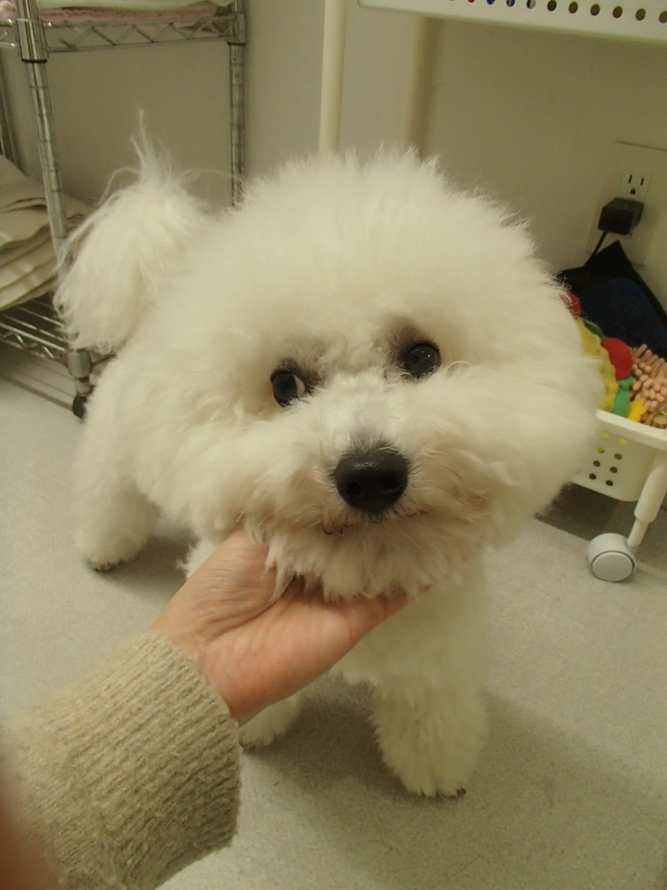 今日までお泊りだったビションフリーゼのおもちくんです!